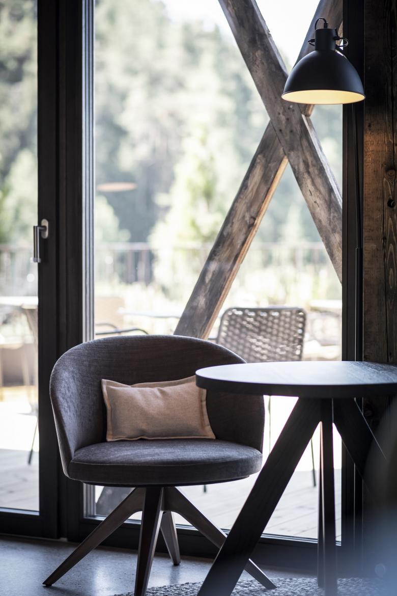 "The interior design was handled with great detail", explains the interior designer Barbara Runggatscher, who coordinated the project. "We decided on natural materials and fabrics to create a relaxing environment. We chose the darkest tone of durmast wood and paired it with neutral rough-fibre upholstery, like thick-weaved linen and cotton. A large part of the decor was custom-designed with the aim of offering maximum comfort and personalised solutions".