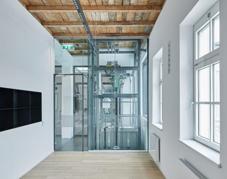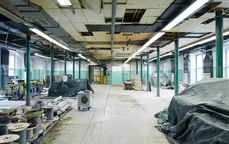 Im Schleifsaal wurden umhüllende Bauteile und Tragkonstruktion in ihrem ursprünglichen Zustand belassen, bzw. unmerklich im notwendigen Ausmaß saniert und erneuert.