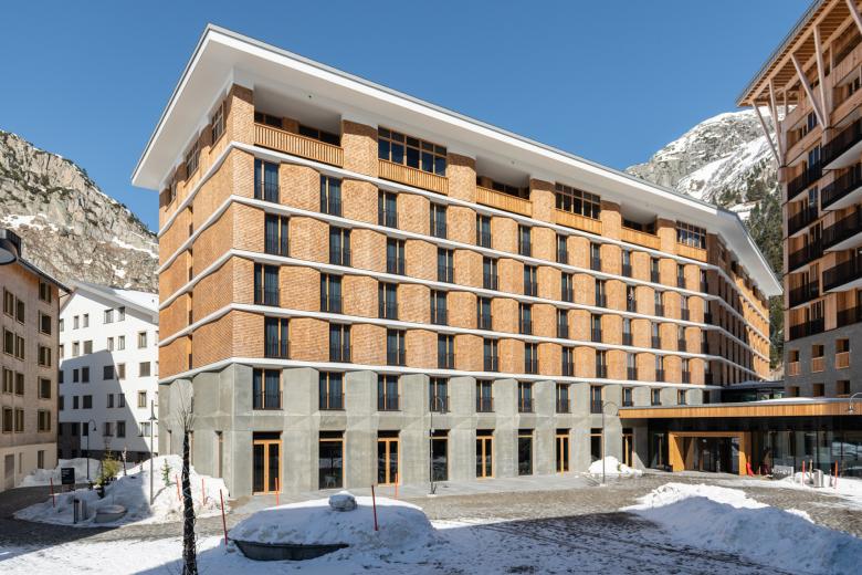 Das frühere Andermatt ist kaum mehr wieder zu erkennen. Hat man einmal die Schöllenen mit dem Auto passiert und biegt ins Urserntal ein, thront da mächtig das Radisson Blu - ein weiterer prägnanter Wurf innerhalb der offensiven Tourismusstrategie, für die Andermatt sich in den letzten Jahren ausgesprochen hat. Knapp 250 Zimmer finden hier Unterbringung, ebenso ein grosszügiger Wellnessbereich und vielseitige Aufenthaltsräume bis hin zu Seminar- und Kulturräumen. Dank der Materialwahl (Holz) pflegt sich das Objekt optimal in die Region ein. Es lockt gleichwohl Geschäftsleute wie auch Feriengäste an, bietet das Urserntal doch vielschichtige Sport- und Freizeitaktivitäten und lädt ausserdem zum Tagesausflug ins nahe gelegene Tessin, Wallis oder Bündnerland ein. PIRMIN JUNG hat die Holzbauer und Architekten hinsichtlich der Tragwerksplanung der Dachkonstruktion und des Brandschutzes im Bereich der Holzfassade unterstützt.