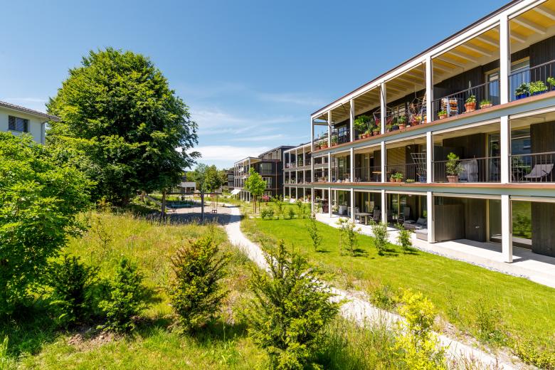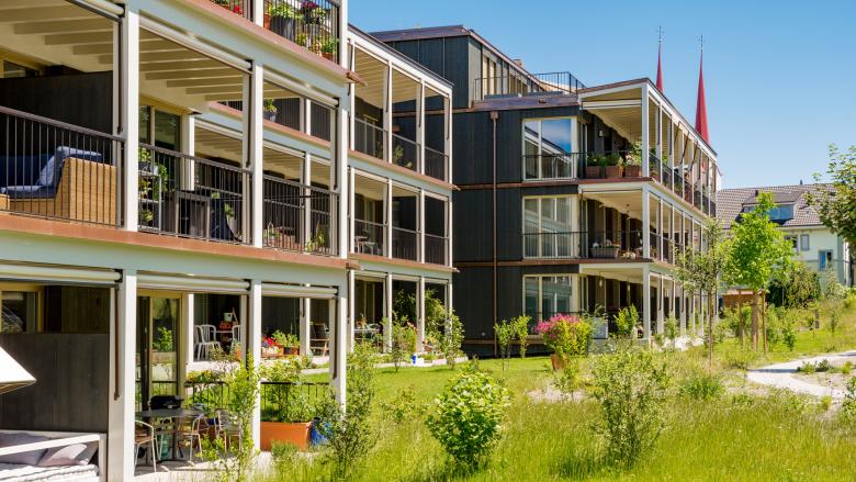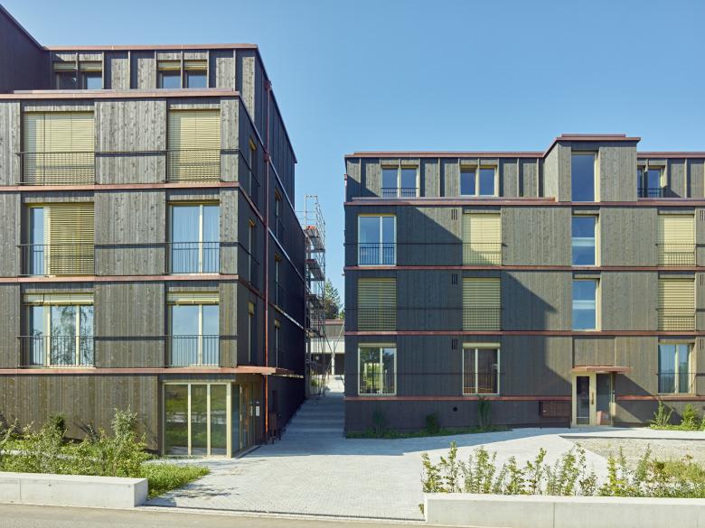 Auf knapp 11'000 Quadratmetern sind in Muri AG neun Hybrid-Mehrfamilienhäuser (vier- und zweigeschossig) mit insgesamt 54 Wohneinheiten entstanden. Dabei handelt es sich bei einem Drittel um Wohneigentum und bei zwei Dritteln um genossenschaftliche Mietwohnungen. Die Wohnüberbauung Am Chatzebach steht für durchmischtes Wohnen und bietet sowohl Familien, jungen Paaren und Bewohnern im höheren Alter ein Zuhause. Ausserdem ist die Spitex Muri und Umgebung im Gebäude untergebracht. Der grosszügige und vielseitig angelegte Aussenraum fördert soziale Interaktionen. Die Wohnungen wurden nach MINERGIE-P und SNBS (Standard nachhaltiges Bauen Schweiz) zertifiziert. Es ist die erste Wohnbaugenossenschaftssiedlung, bei der das SNBS-Label vergeben wurde. Dieser Standard definiert eine ganzheitliche, zukunftstaugliche Entwicklung von Siedlungen und Infrastrukturen in der Schweiz.