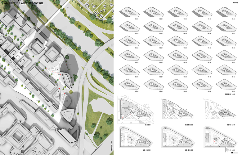 Das Sockelbauwerk ist durch städtische, öffentlich zugängliche Plateaus gegliedert und eröffnet somit neues Terrain. Die stadträumliche Bedeutung des Bauwerks wird durch die Zugänglichkeit der Plateaus und den Nutzungsmix unterstrichen. Die Plateaus des Sockels können über eine außenliegende großzügige Treppenanlage erreicht werden und verbinden das Gebäude mit dem umliegenden öffentlichen Raum auf + 11.50m ü Wr. Null. Diese Entwicklung soll zur Belebung des öffentlichen Raums des gesamten Quartiers beitragen.