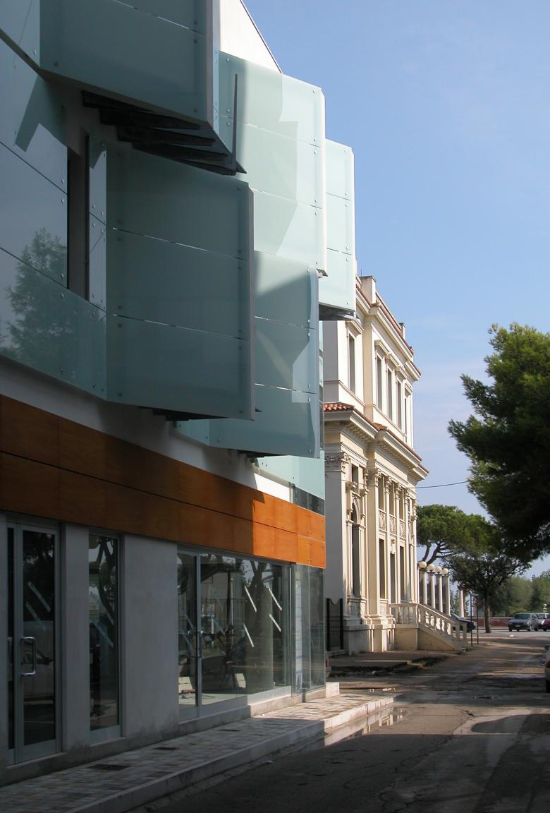 Il sito è parte del tessuto urbano d’espansione di una città della lunga conurbazione diffusa della costa adriatica; esso è posto alle spalle di uno dei più vecchi e gloriosi edifici ludici: il Kursaal. L’edificio è disposto su un lotto rettangolare allungato con orientamento est-ovest, a ridosso del lungomare; i temi del progetto si misurano con la risoluzione tipologica e morfologica di una serie di istanze che ad una prima lettura sono fortemente penalizzanti: