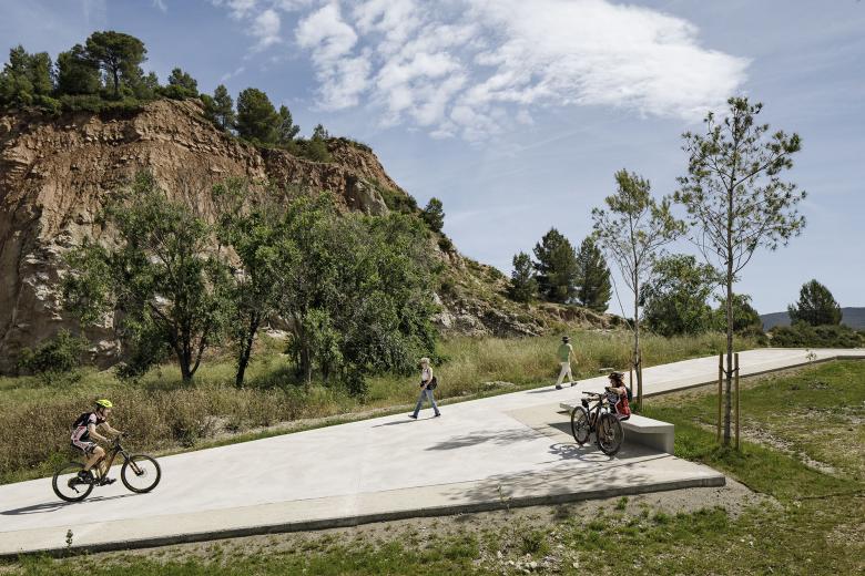 The Camino de las Guixeres project forms part of Igualada’s broader Green Belt initiative, which aims to create a network of pedestrian and cycling routes encircling the city. The natural area traversed by the path was highly degraded, due to extensive chalk extraction in the subsoil (Guixeres del Claret and del Pelfort) and the site’s previous use as a municipal waste transfer station.