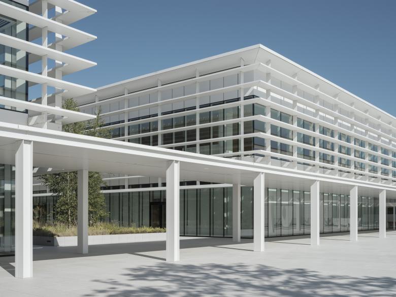 The project comprises a new service building adjacent to Inditex’s Headquarters and and the urbanization of the area. The programme is organised across clearly differentiated three volumes, linked by a longitudinal colonnaded strip that connects the entrances and ends in the two connecting walkways with the existing building.