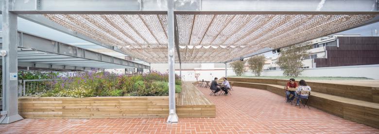 Flexible workspaces are arranged around the new central courtyard on the typical floors, fostering a connection with the terraces and greenery. The layout centres on an open-plan workspace, flanked by side strips housing circulation cores, services, meeting rooms, offices, and break areas. The roof is conceived as a productive, active space, combining a main terrace linked to the courtyard and the Zamora Street façade—designed for social interaction and relaxation amid vegetation and shaded by adjustable canopies—with a technical zone accommodating building services and photovoltaic panels integrated into the existing pergola.