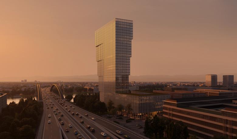 In Offenbach, nahe der Mainbrücke am Kaiserlei entsteht mit dem Namu ein in vielerlei Hinsicht eindrucksvolles neues Quartier. Der 124 m hohe Holzhybridbau setzt mit seinen 32 Geschossen auf rund 60.000 m2 Bruttogrundfläche einen ausdrucksstarken weithin sichtbaren Orientierungspunkt in der Rhein-Main Metropolenregion. Die mit zunehmender Höhe breiter werdende Form hebt das Gebäude deutlich von den klassischen, sich nach oben verjüngenden Frankfurter Hochhäusern ab. Zugleich überzeugt Namu – das koreanische Wort für Baum und Holz – durch seine zukunftsorientierte Bauweise nach der Cradle-to-Cradle Strategie. Dank des hohen Holzanteils werden somit schon vor Baubeginn viele Tonnen CO2 aus der Luft gefiltert. Miteingebundene innovative Holzleimbinder sorgen dabei für Brandschutz und Stabilität. Die durch den Holzeinsatz mögliche modulare Bauweise erleichtert zudem die Montage, Wartung und Instandhaltung des Objekts.