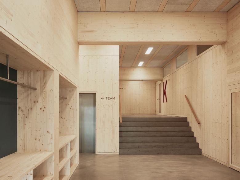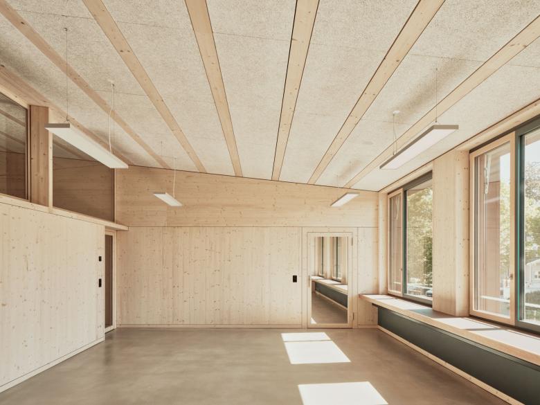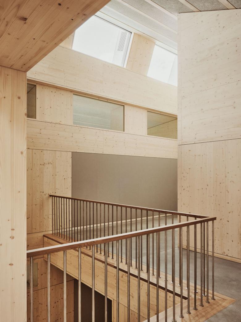 sind aus Schreinerwerk und werden von den Vordächern geschützt. Die Dachaufsicht wird durch eine kammartige Gaubenlandschaft strukturiert. Der Neubau übernimmt wohltuend die kontextuellen Prinzipien und definiert wie selbstverständlich einen Vorplatz entlang der Landhausstrasse. Der Eingangsbereich wird als strassenseitige Platzerweiterung in der Serie der Schul- und Sportplatzzugänge interpretiert. Der Projektvorschlag bietet eine einfache Grundstruktur als solider Rohling für die tägliche Schulnutzung. Die Gebäudestruktur ist langlebig und nutzungsneutral ausgelegt.