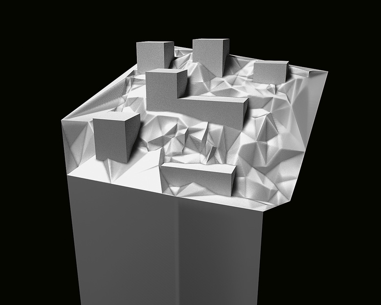 Aus 4 je 7 Geschosse hohen Blöcken mit Höfen, von denen keiner dem andern gleicht, ragt je ein 20 bis 35 Geschosse hoher Turm, von denen wiederum keiner dem andern ähnlich sieht und auch keiner dem andern die »Schau« stiehlt. Die Türme weisen mit ihren schmalen Seiten genau nach Norden, Osten, Süden, Westen. Es versteht sich, dass die Blöcke um den Rundplatz mindestens im Erdgeschoss und Ersten Obergeschoss allein öffentlichen kulturellen und kommerziellen Einrichtungen dienen.