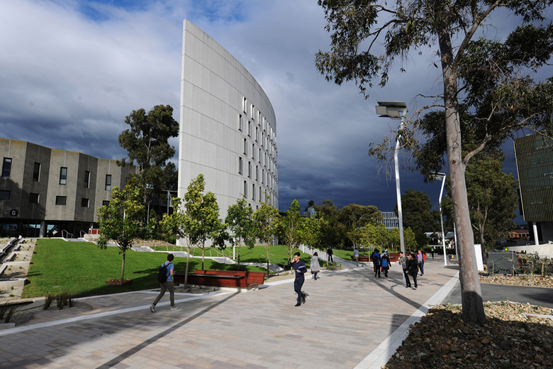 Integrated pole-top solar panels supply power to the grid. A 6.0 metre clear zone with a setback creates rational circulation and marquee zones for frequent events. An extensive dryland garden sequence has been installed with planting design by Paul Thompson. This contrasts strongly with an enlarged, irrigated campus green sward, creating three new, different, and landscape characters on the site.