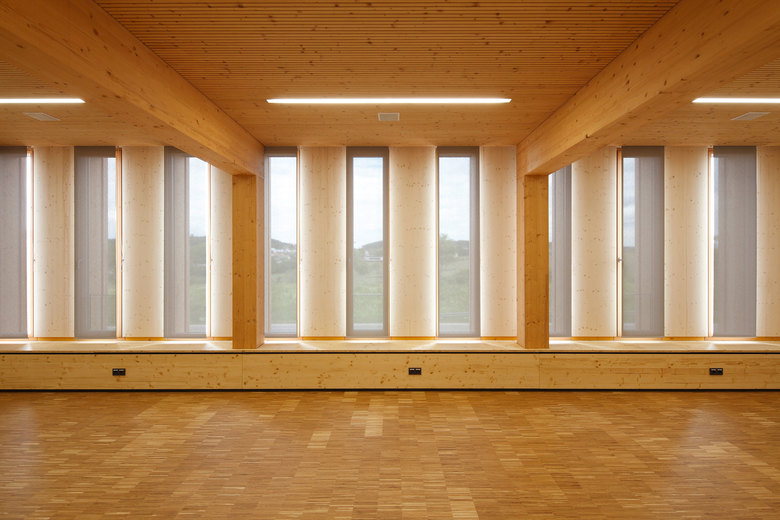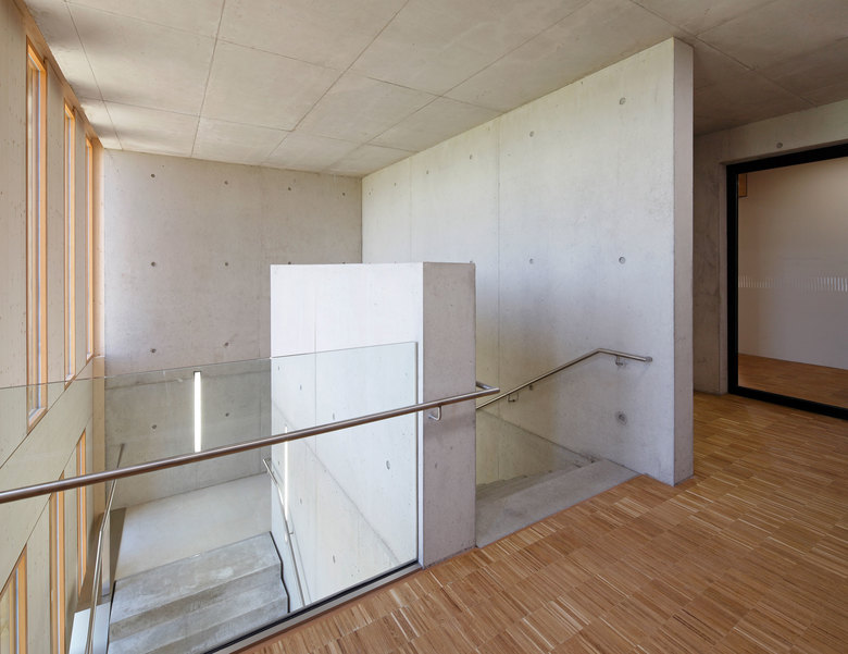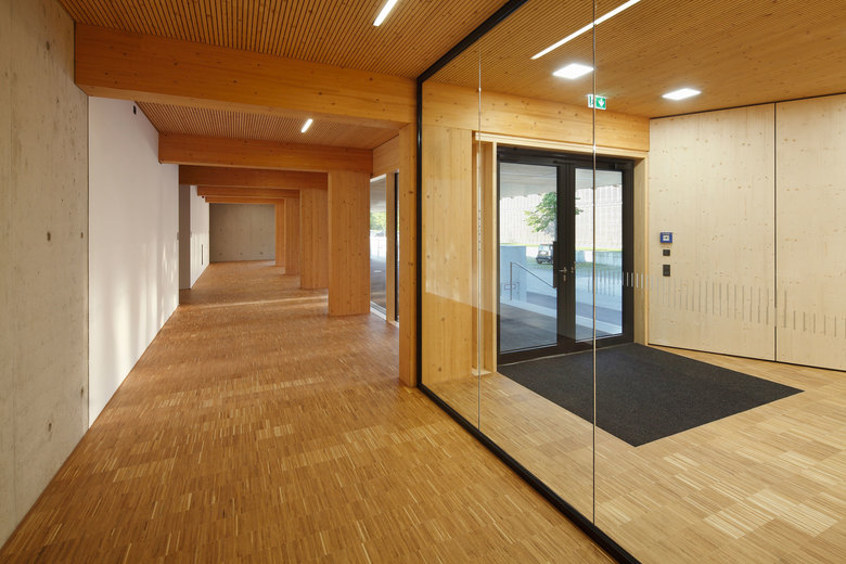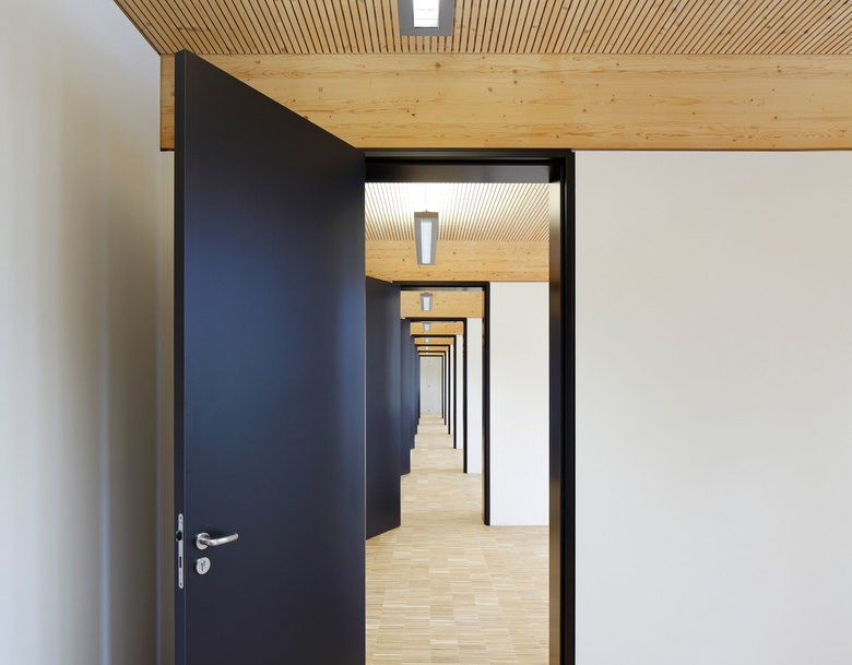 Der an der Bundesstraße 29 und vor der Kulisse der dreigeschossigen Hochschulbauten des Campus „Am Burren“ gelegene Neubau definiert den westlichen Abschluss des Hochschulgeländes. Mit massivem Sockel und einer elementierten Bauweise aus Holz in den Obergeschossen interpretiert das langgestreckte Gebäude zeitgemäß eine traditionelle Bauweise. Gefertigt aus nachwachsenden Rohstoffen mit modernen industriellen Fertigungsmethoden wurden die vorteilhaften Eigenschaften des Baustoffs Holz maximal ausgereizt und in neue Bauformen umgesetzt.