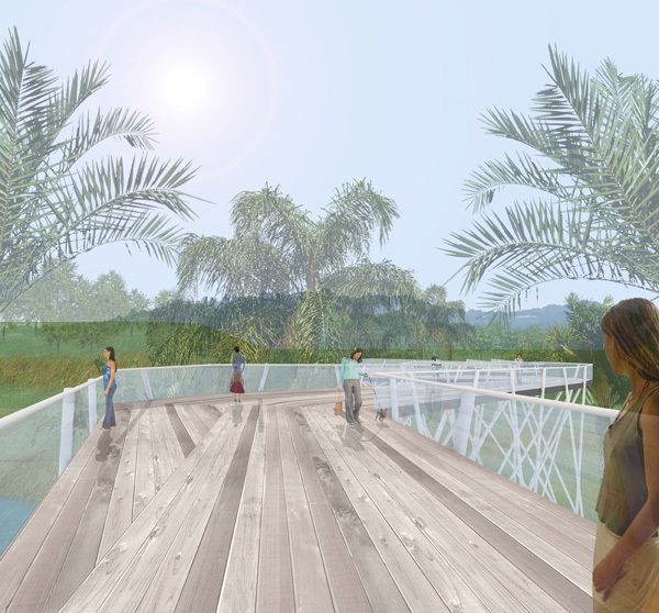 The main architectonic interventions consist of a series of programmatic bridges, a Communitarian Center, a Museum of Aviation, diverse cultural institutions and a series of multifunctional pavilions.