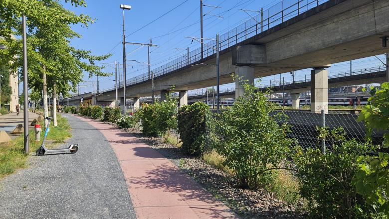 Aus Zürichs einstigem Industriequartier ist ein aussergewöhnliches Stadtviertel entstanden, in dem neue Freiräume unmittelbar neben erhaltenen Bauten des Industriezeitalters stehen. Eine besondere Qualität besteht im direkten Nebeneinander von Wohnen, Arbeiten, Lernen, Einkaufen, Kultur und Freizeit. Entlang der Achse der ehemaligen Industriegleise reihen sich unterschiedliche Bauvorhaben und Grünanlagen auf. Die von uns vorgeschlagene Strategie im Umgang mit den disparaten Räumen wertet nicht nur das Industriegleis auf, sondern thematisiert den Umbruchprozess und entfacht eine neue Dynamik im Planungsgebiet. Das attraktive Rückgrat bildet ein 5 bis 10 Meter breites Band, die Flaniermeile, die von einer Baumreihe aus Ginkgos räumlich betont wird und durch einen roten Betonbelag als Fuss- und Radweg begeh- und erfahrbar wird. Gleichzeitig setzen wir mit einer markanten Fussgängerbrücke ein neues Zeichen im Quartier. Ein Baukastensystem aus Gestaltungsrichtlinien ermöglicht sowohl eine zeitlich unabhängige Realisierung als auch eine individuelle Ausgestaltung bei gleichzeitig einheitlicher Handschrift. Die Ginkgos, Mastleuchten, Sitzbänke und die roten Bodenplatten konstituieren das dauerhafte «Basic-Kit» des Gleisbogens. Die «Action-Tools» sind für kurz- bis mittelfristig angelegte, eher provisorische Freiräume vorgesehen, während die «Park-Tools» den raumbildenden, klassischen Park- und Platztypus definieren, der auf einen längeren Zeitraum hin angelegt ist. Wie die unterschiedlichen Tools angewendet werden, hängt von der Verfügbarkeit der Parzellen ab, von den Ansprüchen der Grundeigentümer und von den Bedürfnissen der Stadt. Die Elemente des «Basic-Kits» werden im Tool-Lager vorgehalten und im Rahmen der zeitlich gestaffelten Realisierung je nach Bedarf abgerufen. Nach den provisorischen Nutzungen verbleiben die «Regale» als Spur oder Intarsie am jeweiligen Standort.