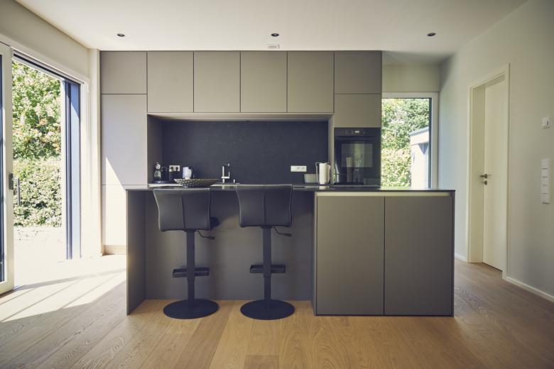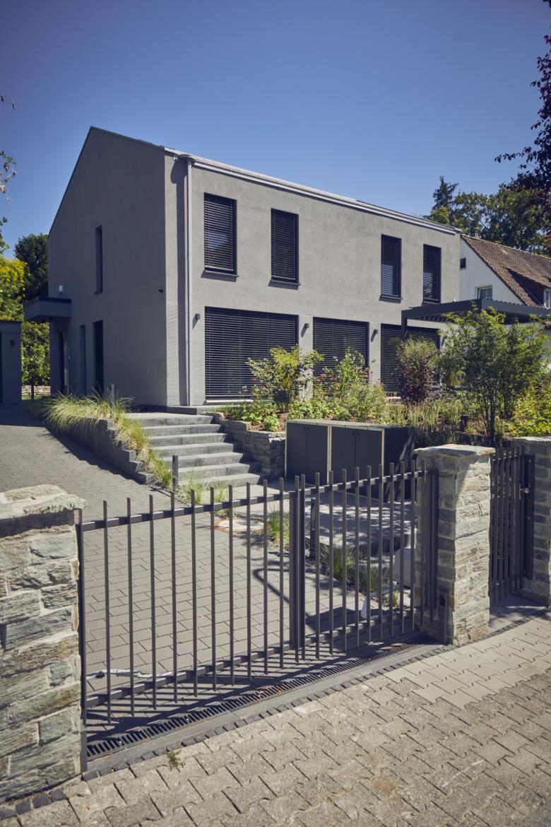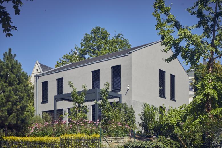 Das Haus fällt sofort ins Auge und ist Gesprächsthema in der Wohngegend: Die klare Form, die hochwertigen Materialien und die präzise Umsetzung in der Vorfertigung demonstrieren, wie Nachhaltigkeit, Technikinnovationen und anspruchsvolles Design harmonisch zusammenfinden.