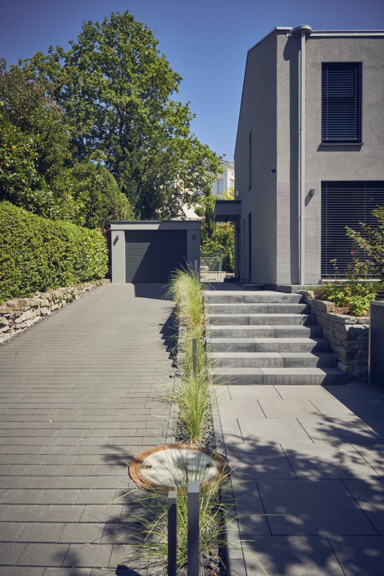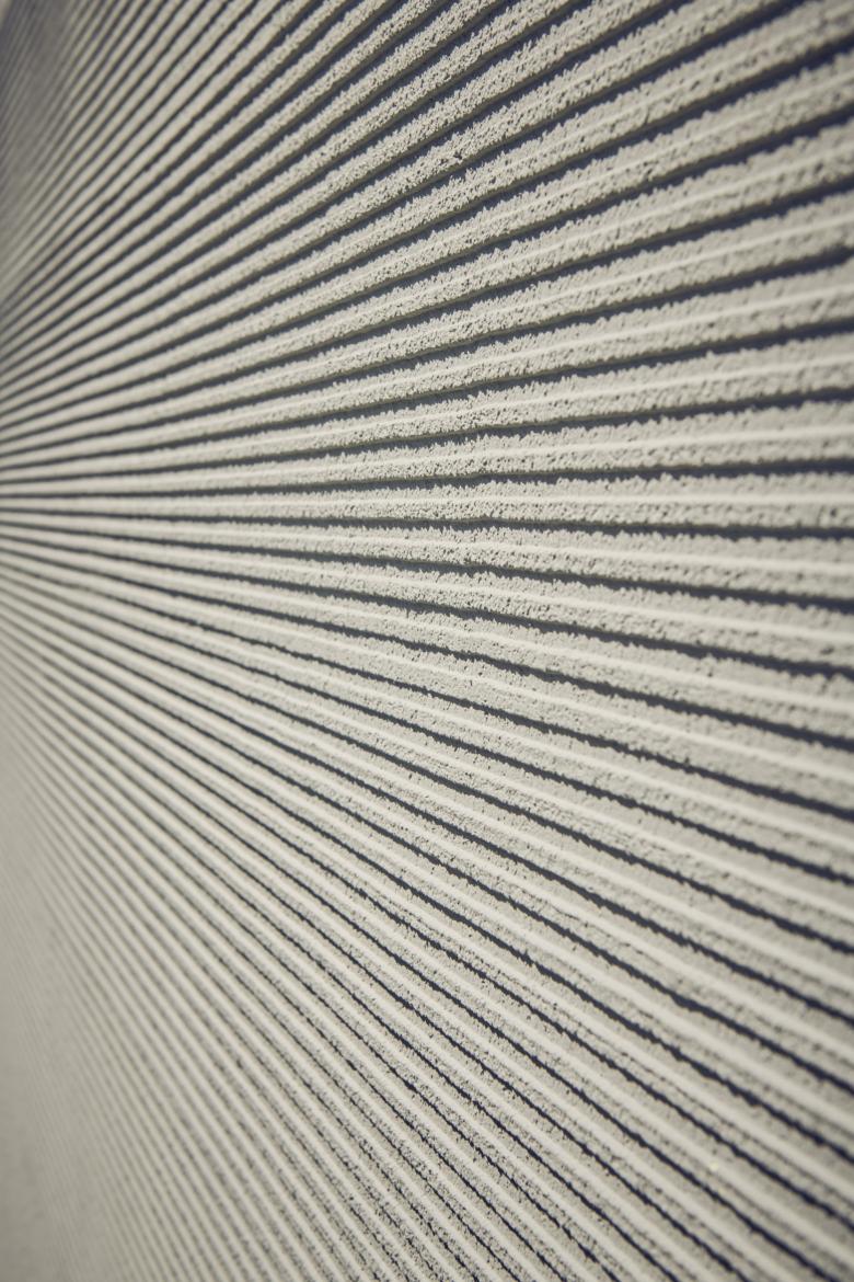 Besonderes Markenzeichen des Projekts ist die Kernidee der Fassade im Erdgeschoss: eine Putzoberfläche in horizontalem Kratzputz, exakt umgesetzt in Zusammenarbeit mit dem Hersteller Sto. Diese Detailentscheidung verleiht dem Haus eine reduzierte, moderne Erscheinung und sorgt für eine charakterstarke, zeitlose Ästhetik.