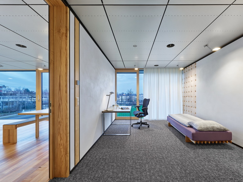 Besucher können sich im Eingangsbereich der Unit sowie in einer eigenen Materialbibliothek über alle eingesetzten Materialien und Produkte informieren.