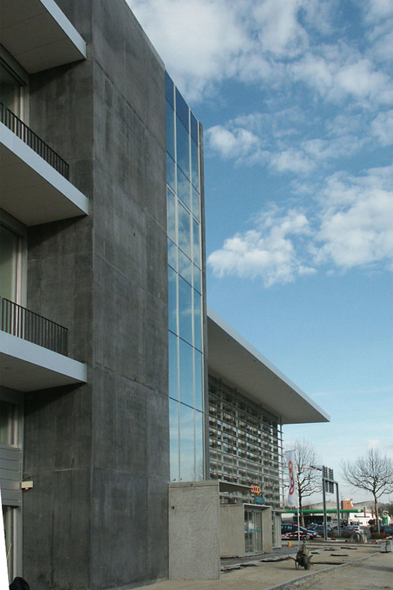 Das moderne Gewerbehaus beim Einkaufszentrum Volkiland ist als Dienstleistungszentrum mit ca. 4'500 m2 Verkaufsfläche sowie 5'500 m2 Bürozonen konzipiert. Das Untergeschoss,welches als massiver Sockel in Ortbeton ausgeführt wird, ist eine schwimmende Plattform aus welchem drei brachiale, in schwarzem Beton aufstrebende Treppentürme wachsen. Diese fungieren als Ankerpunkte für das leichte, transparente Hauptvolumen.