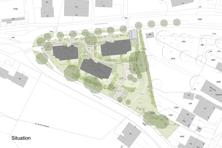Die Lage der Parzelle, zwischen den beiden Strassen und direkt neben der Kirche, machte das Grundstück schon früher zu einem speziellen Ort. Um 1945 lag dieses mit Bäumen bewachsene Grundstück, eher am Rand des Dorfes Volketswil.