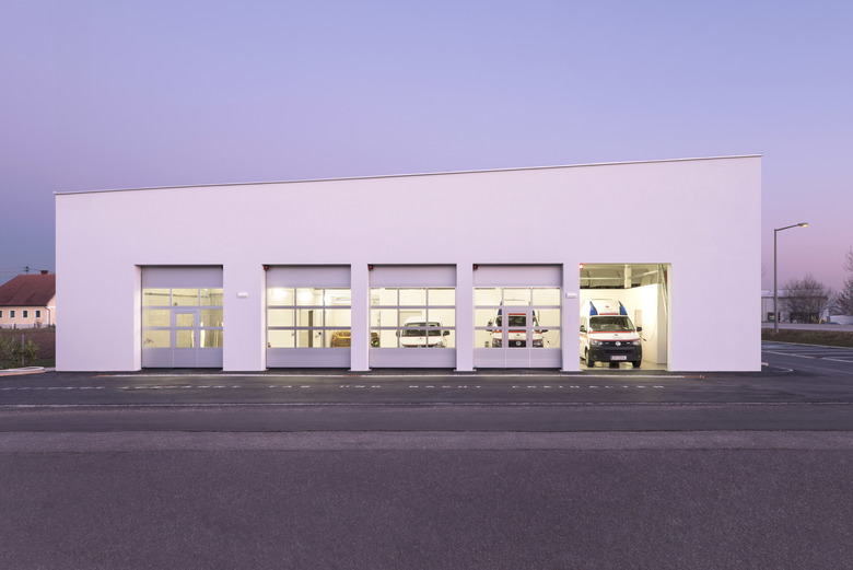 Direkt an der Bundesstraße perfekt gelegen und gut sichtbar ist das Haus so etwas wie ein Hybrid. Garage, Technik, Büros, Schulungsraum, „Hotel“, Aufenthaltsraum und Küche befinden sich unter einem großen, vereinenden Dach.
