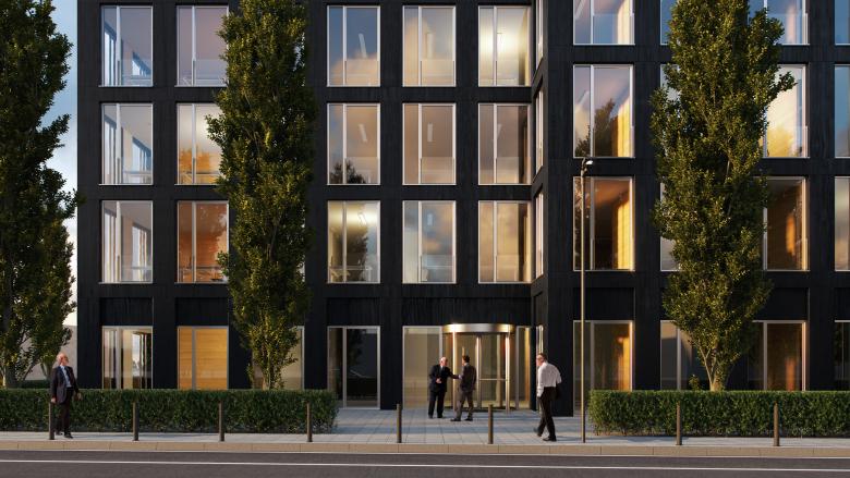 In unmittelbarer Nachbarschaft zum Justiz- und Verwaltungszentrum an der Hohenstaufenstraße 1 entsteht das erste Bürohaus in Wiesbaden in innovativer und nachhaltiger Holz-Hybrid-Bauweise. In dem sechsgeschossigen Gebäude entstehen in zentrumsnaher Lage auf rund 2.400 Quadratmetern ökologisch konzipierte, hochmoderne Workspaces, im Energieeffizienzstandard Effizienzgebäude 55 nach BEG. Eine großzügig verglaste und klar gerasterte Fassade aus dunklen Holztafeln sorgt für spannende Ein- und Ausblicke. Die variable Flächenkonzeption lässt sowohl einen Einzelmieter als auch eine kleinteilige Vermietung zu.