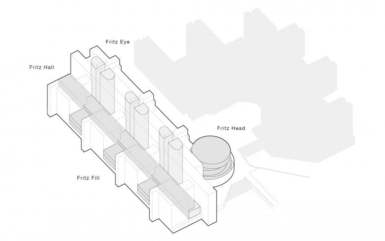 „Fritz Fill“ sieht eine zweigeschossige Aufstockung zwischen den Satellitenbauten und der neuen Erschließungspassage vor. Die Nachverdichtung ermöglicht den Zusammenschluss von großen zusammenhängenden Büroflächen und einen Flächengewinn von ca. 1.900 m².