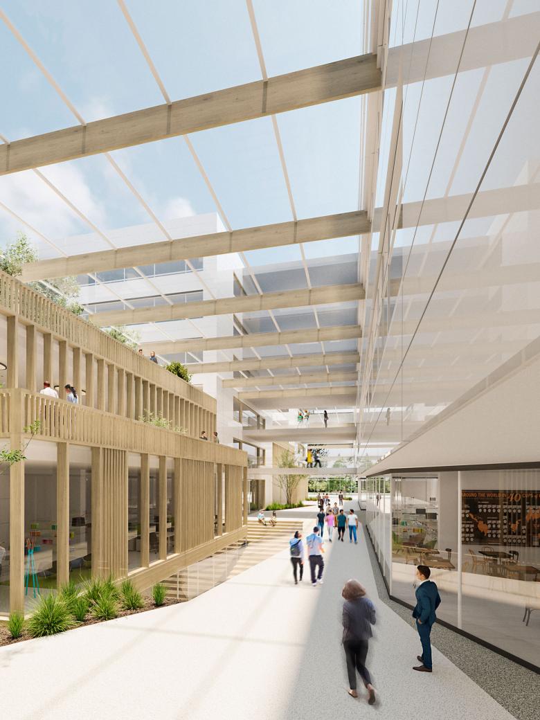 „Fritz Hall“ ist die neue zentrale Erschließung zwischen dem Hauptgebäude und den Satellitenbauten.