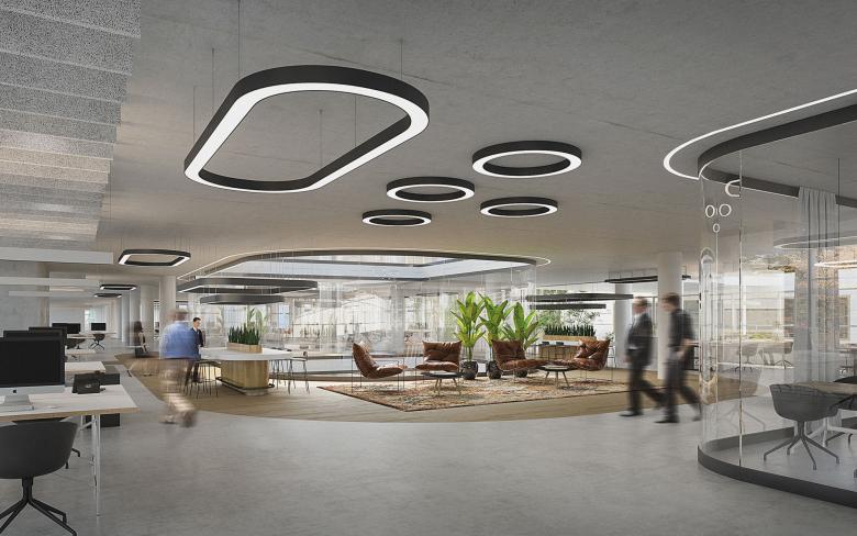 Die Verkleinerung und partielle Schließung der Lufträume im Hauptgebäude – „Fritz Eye“ – erlaubt flexible, zeitgemäße und offene Bürogrundrisse.