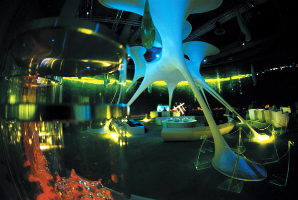 Die Gestaltgebung der realen und virtuellen Architektur beruht auf dem konzeptionellen Ansatz 'genetic architecture', der in diesem Projekt erstmals baulich umgesetzt werden konnte. Die organisch anmutenden, textilen Strukturen entstanden in Anlehnung an computersimulierte Wachstumsprozesse. Sie symbolisieren die zunehmende Konvergenz von Biologie und Technologie.