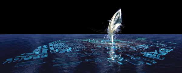 Die interne Diskussion über ein möglichst dauerhaftes Wahrzeichen für die Expo 2000 führte zur Gestaltung der virtuellen Architektur 'visionscape'. Der um die Jahrtausendwende hochaktuelle Diskurs über computergenerierte Architektur legte nahe, die Expo durch ein ebensolches Symbol zu repräsentieren. Der Entwurf reizt die unbegrenzten Dimensionen der Virtualität ironisch aus: Die knospenähnliche Form von 'visionscape' wächst bis zu einer Höhe von zwei Kilometern über das Expo-Gelände hinaus. Innerhalb einer 4000 qm großen Messehalle wurde die interaktive Erlebnislandschaft 'scape' als physisch erfahrbarer Ausschnitt dieses immateriellen Konstrukts in die Realität umgesetzt.