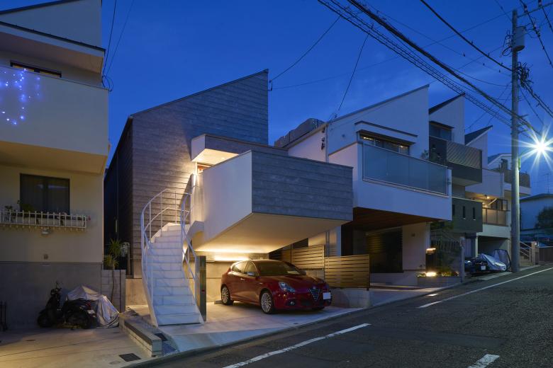 The site had a frontage of 6 m and an area of 99 sqm, and was surrounded by similar lots. Given the regulatory conditions of the vicinity, the outline of the detached houses in the neighborhood would inevitably be similar to one another, but there was some flexibility left in the balcony, so we wanted to make the most of the lot and characterize the house by the way we define the balcony.
