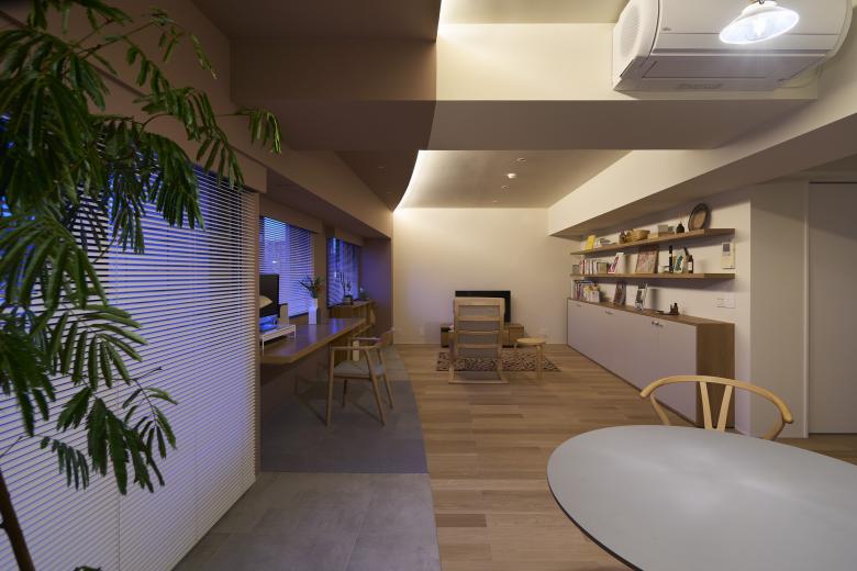 The apartment that the client purchased for his home is located near the railroad tracks, a few minutes walk from a small railway station. The vicinity is a quiet uptown residential area, with a laid-back atmosphere that emanates from the trains running through houses, the people walking in the neighborhood, and even the residents coming in and out of the apartment.