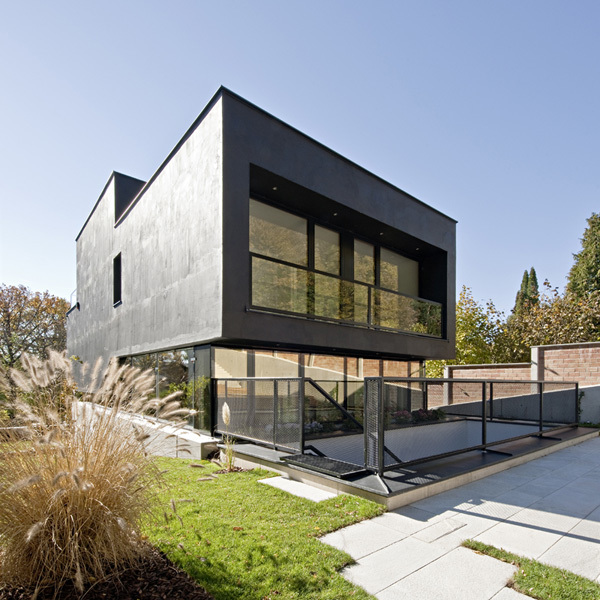 Bestärkt wird dieser Anschein durch die mattschwarze Fassade des Hauses. In seinem Inneren hingegen bietet es seinen Bewohnern mithilfe von sieben, jeweils halbgeschossig zueinander versetzten Ebenen eine weitläufige und abwechslungsreiche Wohnwelt.