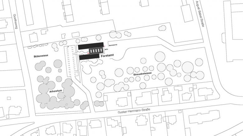 Der Neubau „Forstamt Jena-Holzland“ in Stadtroda (Ostthüringen) beherbergt eines von 24 Thüringer Forstämtern sowie die Forstinspektion Ost. Das naturnahe Anwesen ist geprägt von einem alten Arboretum und weitläufigen Streuobstwiesen mit Bienenstöcken. Das Grundstück bot somit ideale Voraussetzungen für das Forstamt, das auch in zahlreichen waldpädagogischen Angeboten Wissen über das Ökosystem Wald und die Bedeutung von nachhaltiger Forstwirtschaft vermittelt.