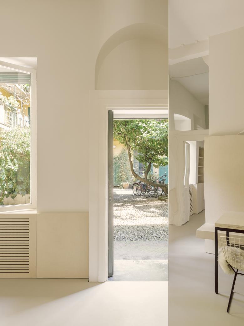 The small 45 sqm apartment is located on the ground floor of a characteristic Milanese "casa di ringhiera".