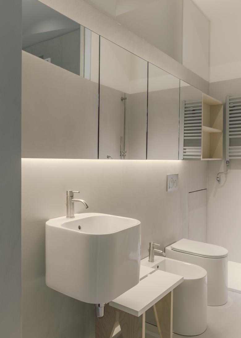 Ogni elemento d’arredo è stato realizzato su misura, modellando i piccoli spazi con precisione e un’estrema cura per il dettaglio.