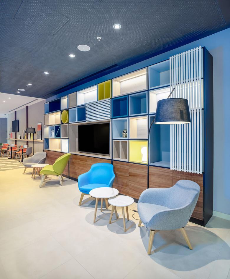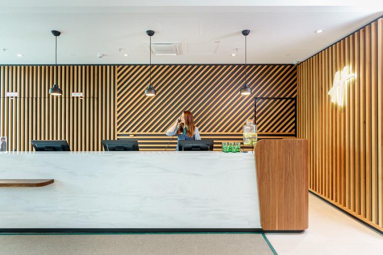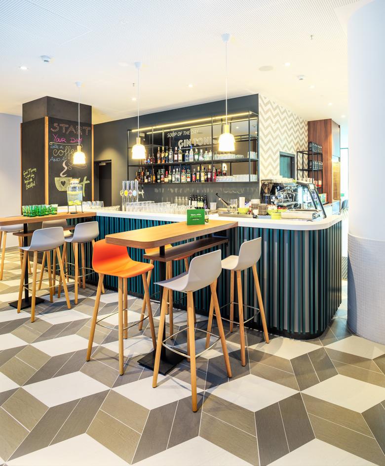 Thanks to the new Holiday Inn Vienna South, Archisphere can furnish Novum Hospitality with new perspectives in a number of different senses. The gastronomic facilities’ design is consciously aimed at not only the hotel’s guests, as it invites the people who work and live here to make use of the public areas. The lobby shares the entrance area with access to Immofinanz’s Myhive office concept and seamlessly transitions into a “third place” café that directly opens up to the mall.