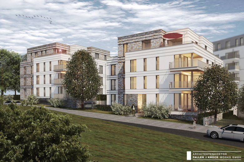 Ein leerstehendes Hochhaus in der Nordweststadt wird abgebrochen. Die neue Planung sieht entlang der Straße „Am Stockborn“ einen Riegel mit Geschosswohnungbau vor. Tief eingeschnittene Höfe gliedern das Bauvolumen in einzelne Häuser. Zwischen den Kopfbauten sind Grünflächen mit großen Bäumen vorgesehen. Die hofseitige Bebauung mit Stadtvillen orientiert sich in ihrer Körnigkeit an der Nachbarschaft. Die Planung nimmt Rücksicht auf Bestandsbäume im Norden des Grundstücks und bindet diese ins Freiraumkonzept ein. Durch die starke Hanglage des Grundstücks entsteht entlang der Straße „Am Stockborn“ ein Sockelgeschoss, in dem eine Kindertagesstätte und eine Bäckerei Platz finden. In diesem Geschoss befinden sich auch die Eingangsbereiche zu den darüberliegenden Maisonettewohnungen. So entsteht eine aufgelockerte und durchgehend bespielte Erdgeschosszone. Im Inneren des Grundstücks liegt eine zweigeschossige Tiefgarage, die sich auf drei Höhenlagen der Topografie anpasst.