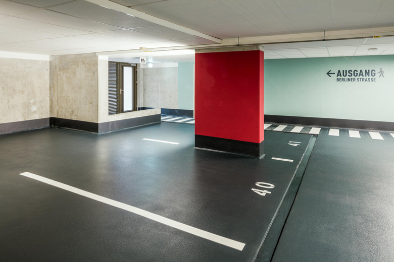 Raumkonzept – Klar strukturierte, nord-süd orientierte Grundrisse erfüllen die Bedürfnisse des Wohnens mit ruhigen und besonnten Freibereichen nach Süden und einem geschlossenen strukturierten Rücken zur Berliner Straße. Alle Wohnungen sind zur Balkonseite mit offenen Wohn- Koch- Essbereich konzipiert, die einzelnen Zimmer und Sanitärbereiche bilden einen privaten Bereich innerhalb der gestaffelten „Zonen der Wohnungsöffentlichkeit“.