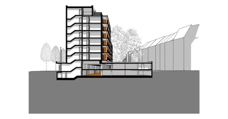 Wohnkonzept – Die Wohnungszahl wird hälftig in Miet- und Eigentumswohnungen aufgeteilt. Ausbauqualität, Raumzuschnitt, Freiraumbezug und technische Ausstattung sind gleich. Das Wohnen beginnt im 1. OG, um Privatsphäre und öffentlichen Raum zu trennen. Die Wohnungen sind barrierefrei erreichbar und für den barrierefreien Ausbau angelegt.