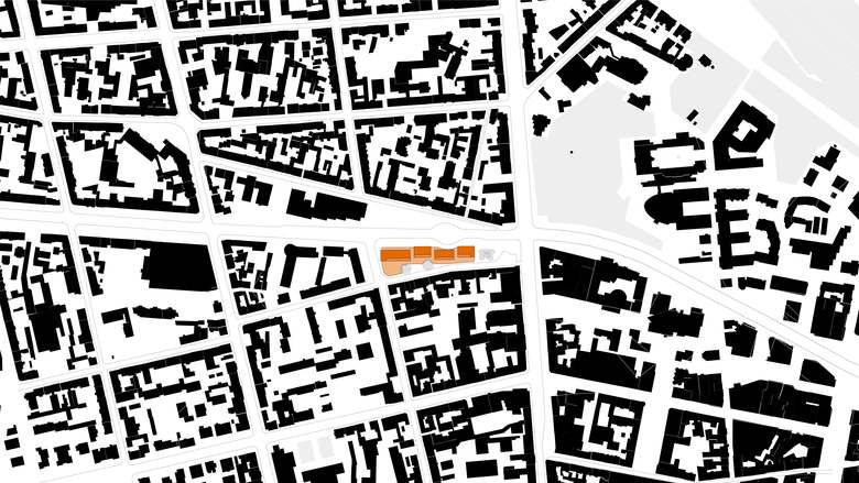 Konzept – Die mit Stellplätzen besetzte Brache zwischen Bahnhof- und Berliner Straße wird mit einem innerstädtischen Wohnungsbau gefüllt. Die neue klare Struktur fasst die Platzkante zum Karl-Carstens-Platz und macht diesen räumlich erlebbar. Das öffentliche, erdgeschossige Parkdeck dient der Parkdruckreduzierung im Quartier. Der prägende Baumbestand an der Bahnhofstraße wird Konzept integriert.