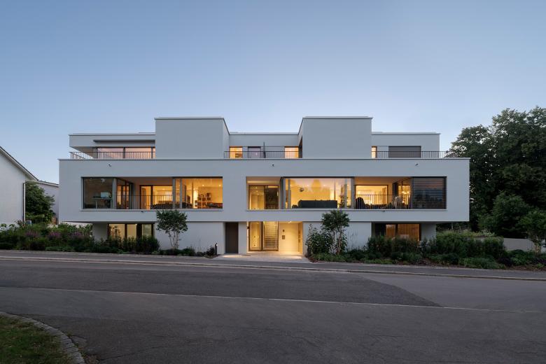 „s’Ziergärtli“ wurde die grüne Rasenfläche, die es mit zwei Mehrfamilienhäuser zu bebauen galt, im urban dominierten Dietikon von der Nachbarschaft liebevoll genannt. Die ungewöhnliche Komposition, zwei Wohnungen im Erdgeschoss, vier im ersten Stockwerk und darüber drei Attikawohnungen, macht aus der entstandenen Wohnanlage ein elegantes Platzwunder. Vertikale und horizontale Elemente dominieren den zeitlosen Bau und schaffen zugleich eine wirkungsvolle Dynamik.
