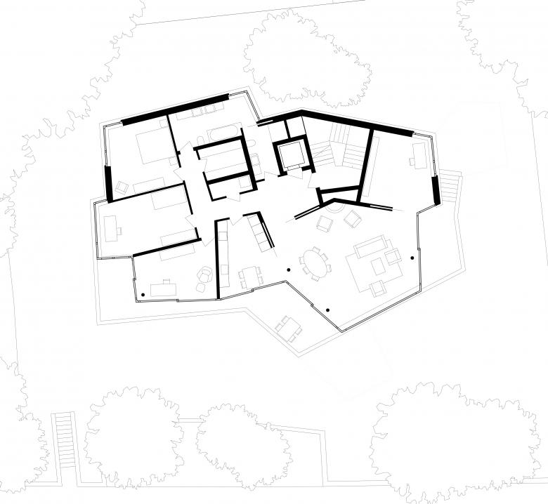 Das Grundstück befindet sich an privilegierter Lage am Hönggerberg mit Blick über die Stadt und die Berge. Anstelle eines Einfamilienhauses sollte dort ein repräsentatives Haus mit vier Eigentumswohnungen entstehen. Der Neubau fügt sich präzise in die Topografie ein und nimmt durch das Knicken des Volumens die Massstäblichkeit des Orts auf. Trotz höherer Dichte gelingt die Neuinterpretation des Themas eines Wohnhauses im Privatgarten: Die Wohnungen verbinden die Ideale des Einfamilienhauses – Privatheit und Gartenbezug – mit denjenigen einer städtischen Geschosswohnung.