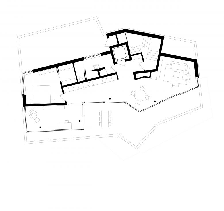 In allen Wohnungen ist ein Grundrisstypus mit klarer Trennung von öffentlichen und privaten Bereichen verschieden ausformuliert. Entsprechend den unterschiedlichen Raumgeometrien, der Aussicht und der Lage der privaten Aussenräume sowie dem Bezug zum Garten wurden differenzierte Grundrisse mit individuellen Qualitäten entwickelt. Thematisch knüpft der Wohnungsbau mit seinen genau determinierten Räumen und Bewegungsfiguren an den Reichtum bürgerlicher Wohnkultur der Nachkriegsmoderne an.