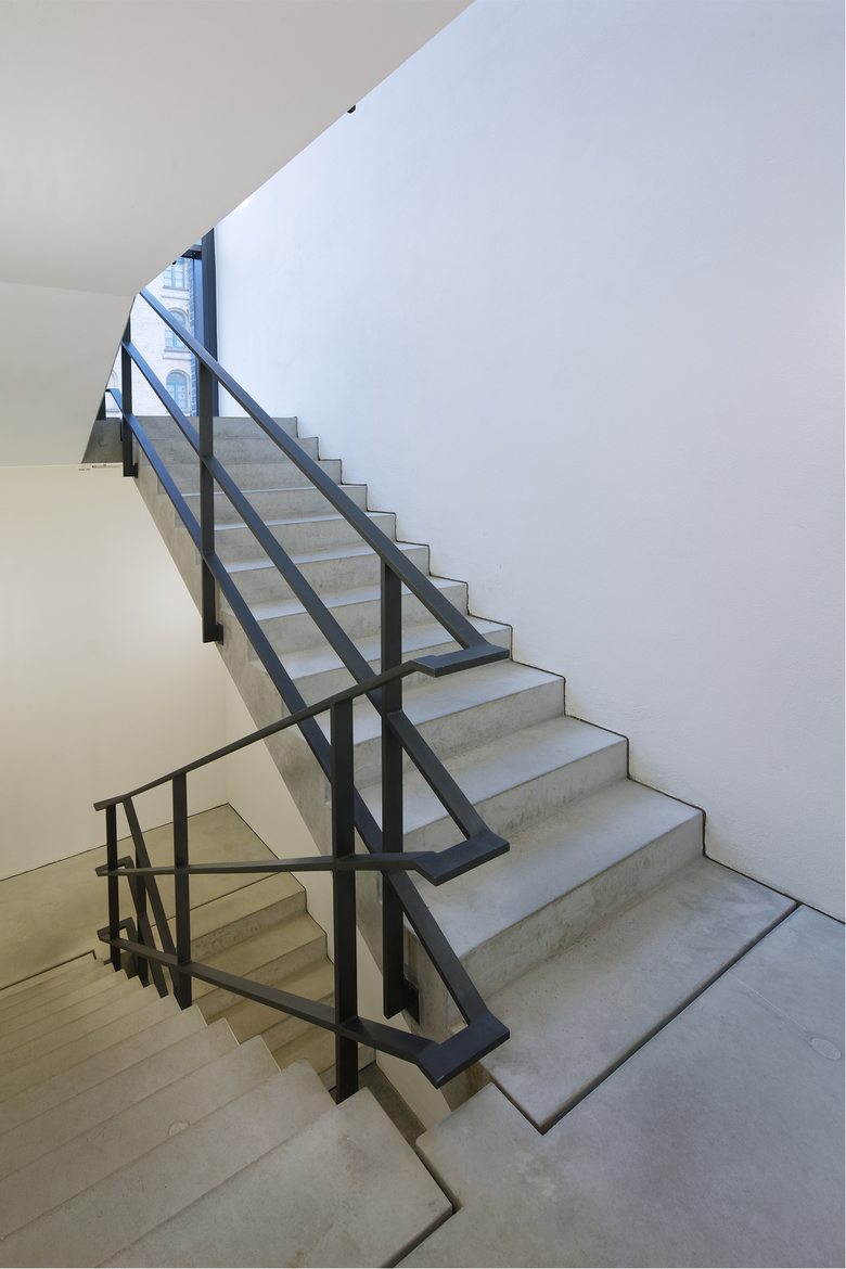 Das Magazingebäude stellt sich als kompakter Kubus dar und ist auf die Systemmaße der Lagertechnik abgestimmt. Die Fassaden werden durch Einschnitte in einzelne Scheiben optisch und konstruktiv gegliedert. Hinter den geschosshohen Lamellenrosten befinden sich sensorgesteuerte Lüftungsklappen, die neben einer zentralen Luftabsaugung auf das Magazinklima einen wesentlichen Einfluss haben.