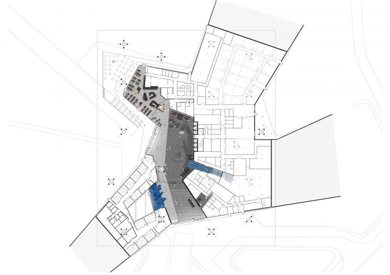 The ARENA is an integral part of the Campus World of Sports, which has recently been expanded. The landscape design was undertaken by the Dutch firm LOLA landscape architects, who were responsible for the “stars”—the colorful connecting paths laid out in the shape of an asterisk—and for the campus areas.