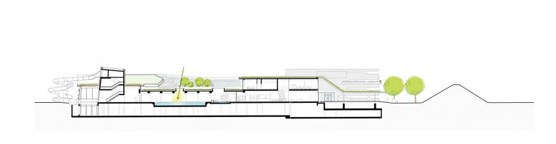 Rather than taking on the appearance of a purely functional building, the parking garage is incorporated into the overall composition and makes a valuable architectural contribution to the complex as a whole. Planting in the protruding “façade beds” has the aim of greening the façades, supplementing the finely tuned interplay between open and closed sections. Behnisch Architekten joined forces with Ockert und Partner to develop a comprehensive signage system that will guide people around the parking garage and the aquatic sports center. It is a connective design element that also emphasizes the unity of the overall ensemble. The newly completed public area situated between the aquatic sports center, parking garage, and ZF-Arena will function as an open-air space for many different purposes and as a versatile venue for various events.