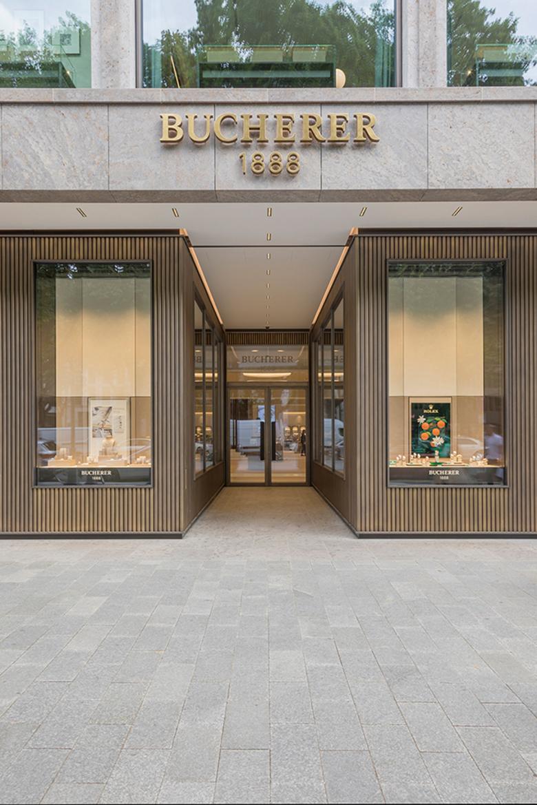 Seit einem erfolgreichen Wettbewerb 2010 entwickelt blocher partners die Stores des Schweizer Traditionsunternehmens. Die zeitlose Eleganz und Klasse der Handwerkskunst von Bucherer vereinen sich im Storedesign, das mit jeder weiteren Eröffnung in den vergangenen Jahren eine behutsame Weiterentwicklung bis ins kleinste Detail erfahren hat. So nun auch in Düsseldorf, wo es galt, dem Flagship Store ein repräsentatives Gesicht zu verleihen. Unter Berücksichtigung des Ensembleschutzes der Königsallee wurde die Messingfassade mit Halbschalen versehen, die hochwertige Anmutung der Uhren und des Schmucks im Innern auf diese Weise nach außen gekehrt.