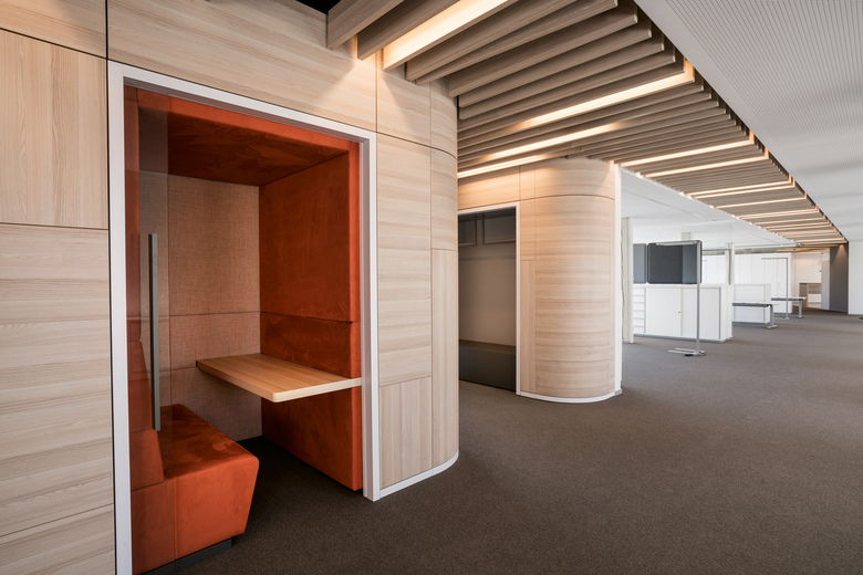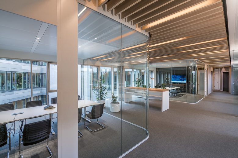 Für die Hoffmann Group, einen international tätigen Werkzeughersteller, schufen die Architekten von blocher partners neue Büros. Als Grundlage für eine offene, zukunftsorientierte Kommunikation im Unternehmen sind am Hauptsitz in München über 200 moderne Büroarbeitsplätze entstanden. Durch maßgebliche Eingriffe verwandelten die Architekten eine ehemalige Lagerhalle in einen repräsentativen Bürobau: Großflächig verglaste Fassaden und ein neu geschaffener Innenhof, der in die Kubatur des Gebäudes geschnitten wurde, lassen lichte Arbeitsplätze und eine inspirierende Arbeitsatmosphäre entstehen. Auf vier Etagen planten die Architekten und Innenarchitekten den Bürokomplex mit vielfältigem Raumangebot. Offene Arbeitsbereiche, Raum-in-Raum-Systeme, Lounge- und Aufenthaltsbereiche sowie intime Meeting-Points fügen sich zu einer innovativen Bürolandschaft. Der weitreichende Einsatz von Glas sorgt für Transparenz und unterstützt die offene Unternehmenskultur. Im Zusammenspiel wird eine stimmungsvolle Arbeitsumgebung geschaffen, die das Miteinander ebenso fördert wie konzentriertes, zielführendes Arbeiten. Im Fokus der Gestaltung stehen der Mensch und seine Leistungsfähigkeit – der Grundstein für eine erfolgsorientierte Unternehmenskultur.