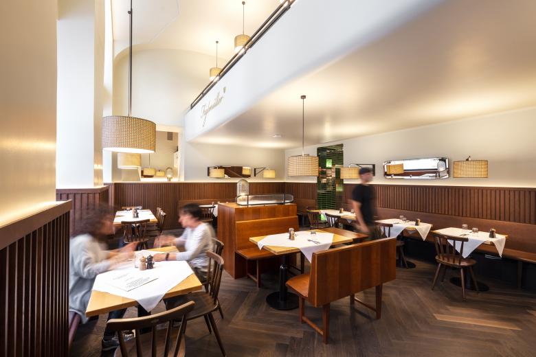 BWM Architekten haben das legendäre Gasthaus Figlmüller in der Bäckerstrasse 6 einer Neugestaltung unterzogen und gleichzeitig das bestehende Lokal um eine ganze Hausnummer erweitert. Klassische Wiener Materialien stimmig gepaart mit modernen Elementen laden in erfrischendem wie gemütlichem Ambiente zu Schnitzel, Tafelspitz & Co ein.