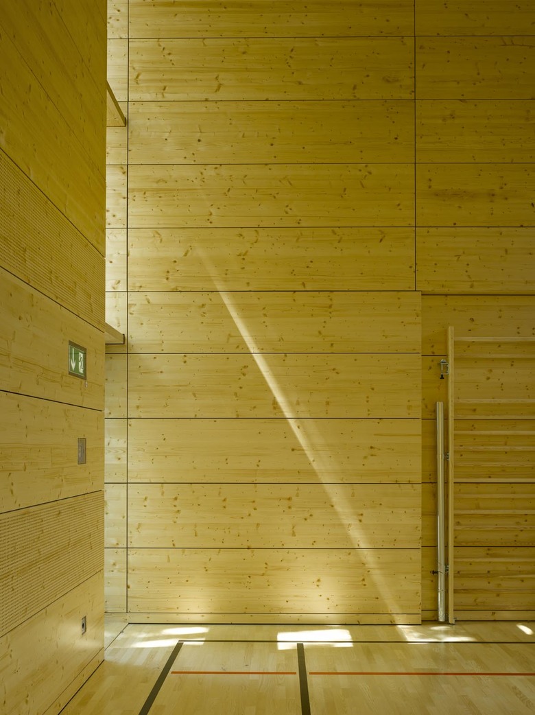 Sporthalle im Baukastensystem, in Passivhausbauweise