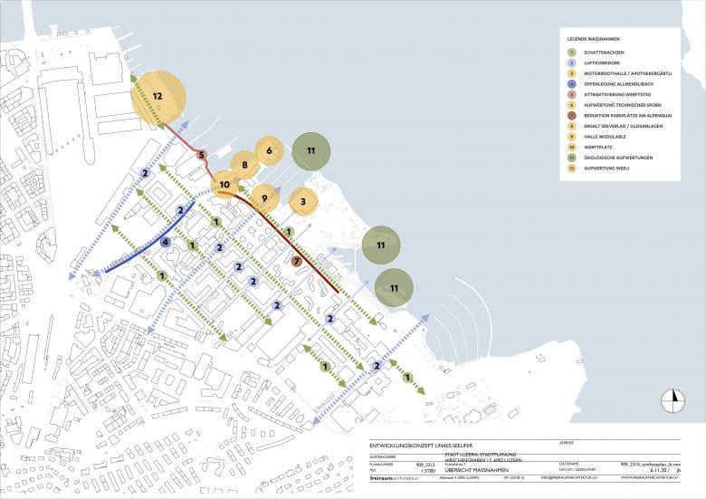 Das linke Seeufer ist ein bedeutendes Naherholungsgebiet der Stadt Luzern. Es vereint sowohl intensiv genutzte wie auch naturnahe Bereiche. Das «Entwicklungskonzept linkes Seeufer» weist den Weg hin zu einem urbanen Lebensraum. Mit viel Grün wird das Gebiet attraktiviert und stadtklimatische Massnahmen sorgen für gute Durchlüftung und Abkühlung.